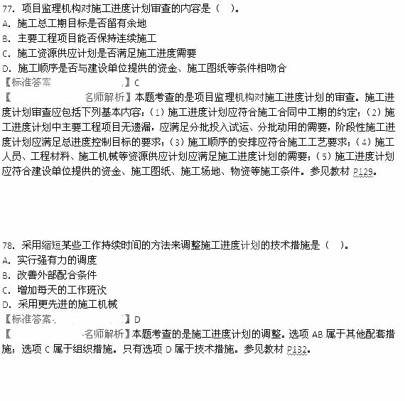 摘要 2015年監(jiān)理工程師《建設(shè)工程質(zhì)量、投資、進度控制》真題及答案(77-81題)
