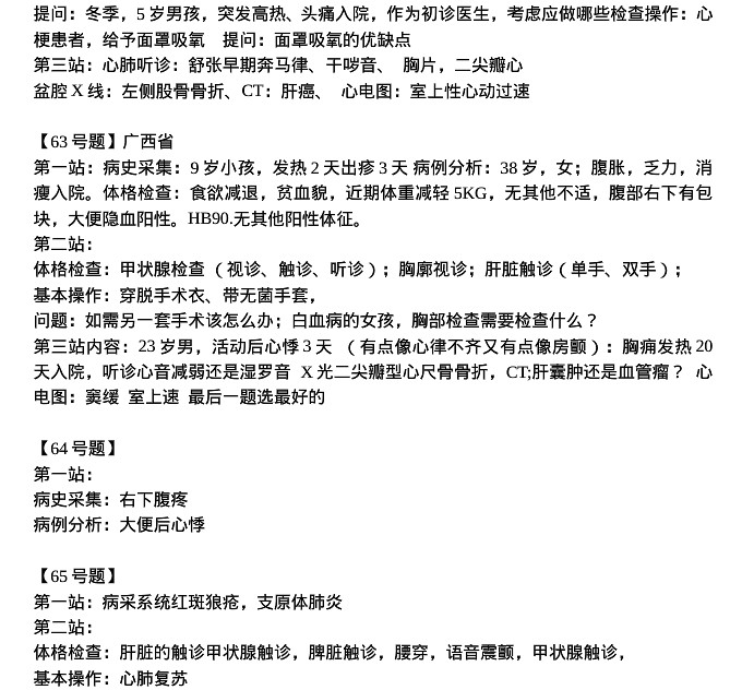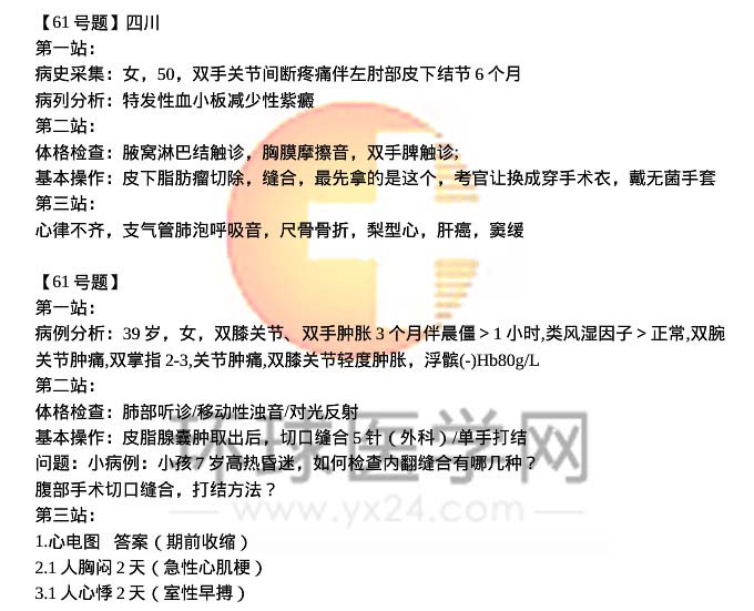 摘要 2013年臨床執(zhí)業(yè)助理醫(yī)師實踐技能61-106題匯總(7月3日)