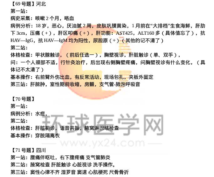 摘要 2013年臨床執(zhí)業(yè)助理醫(yī)師實踐技能61-106題匯總(7月3日)