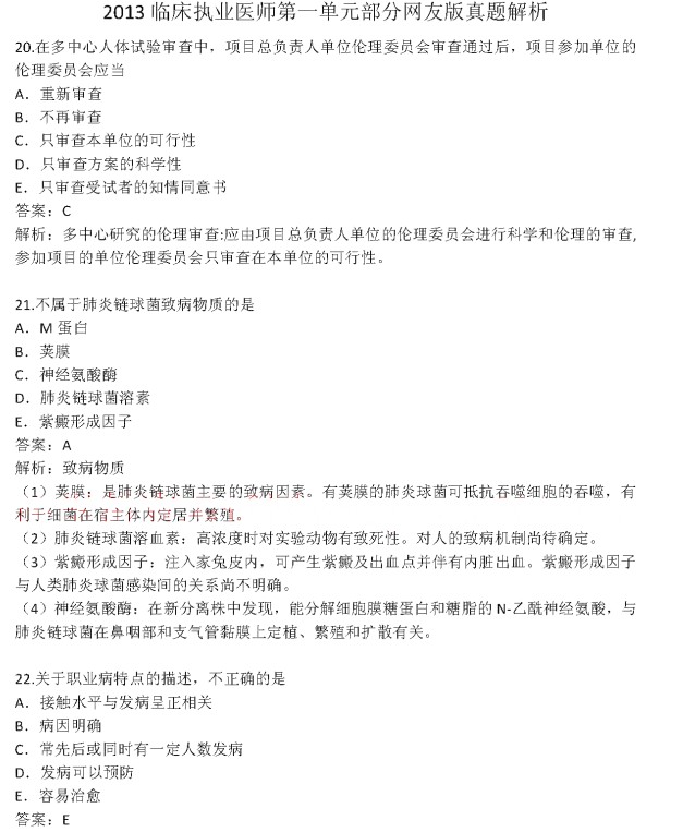 2013年臨床執(zhí)業(yè)醫(yī)師考試第一單元真題及答案(回憶版)
