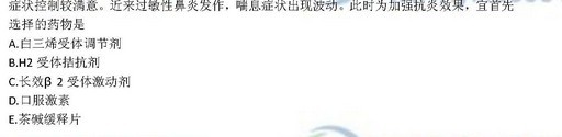 解析:加強(qiáng)抗炎效果應(yīng)選用白三調(diào)節(jié)劑(扎魯斯特,孟魯司特)
