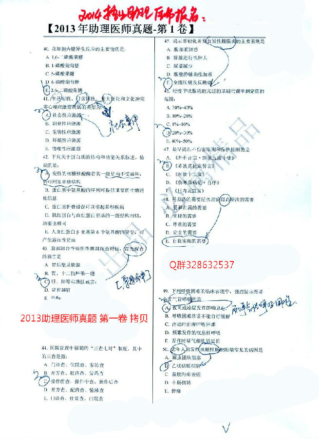 2013助理醫(yī)師真題 第一卷解析