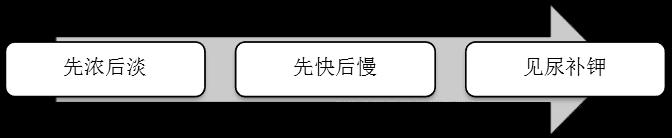 見尿補鉀,濃度不超過0.3%,氯化鉀150~300mg(3~4mmol)/kg/日,缺鉀明顯者為4~6mEq/kg? D. 每日氯化鉀靜滴時間不應短于8h。持續(xù)4~6d。 第二天以后的補液(繼續(xù)丟失量+生理需要量) |