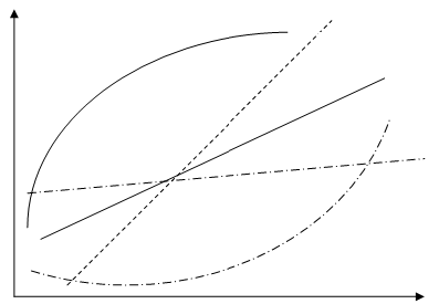 圖1、 四個同類生產(chǎn)企業(yè)的薪酬曲線比較圖