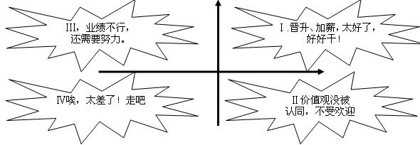 (1)當(dāng)員工的綜合考核結(jié)果是在第四區(qū)域時,即價值觀和工作業(yè)績都不好時,處理非常簡單,這種員工只能離開。