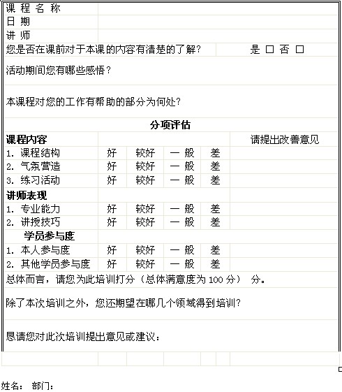 請根據(jù)上述情況,為該企業(yè)設(shè)計出一份培訓(xùn)調(diào)查表。