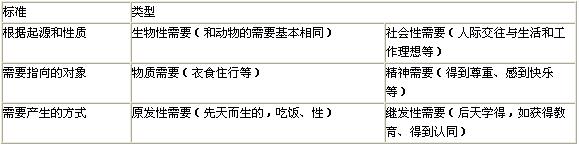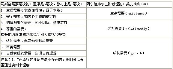 著重理解第一種分類,而且要和馬斯洛需要層次論、阿爾德弗爾三階段理論綜合起來理解。