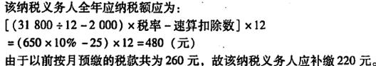 A.計(jì)算應(yīng)納稅所得額時(shí)扣除1600元的費(fèi)用