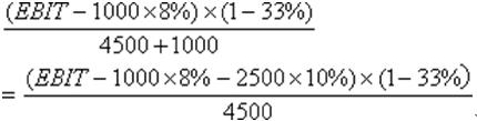 因生產(chǎn)發(fā)展,公司年初準備增加資金2500萬元,現(xiàn)有兩個籌資方案可供選擇:甲方案為增加發(fā)行1000萬股普通股,每股市價2.5元;乙方案為按面值發(fā)行每年年末付息、票面利率為10%的公司債券2500萬元。假定股票與債券的發(fā)行費用均可忽略不計;適用的企業(yè)所得稅稅率為33%。