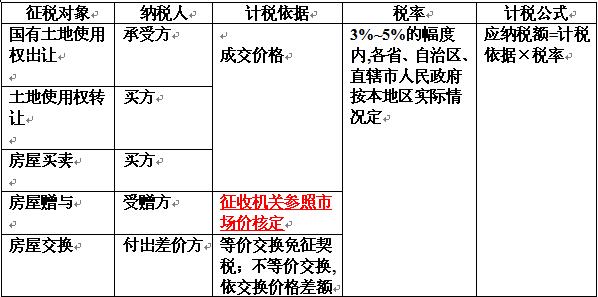 契稅主要規(guī)定一覽表: