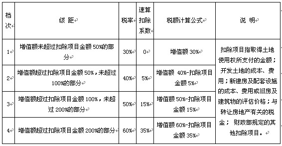 5.土地增值稅:唯一的超率累進稅率(四級),必須記住★
