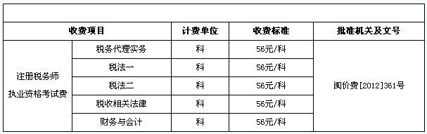 2014年福建注冊稅務(wù)師考試報名費(fèi)用
