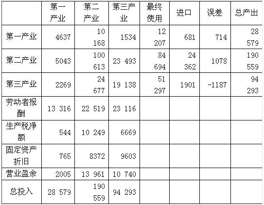 (一)我國(guó)2002年三次產(chǎn)業(yè)投入產(chǎn)出簡(jiǎn)表如下: