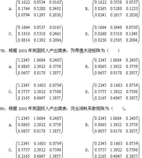 78.根據(jù)2002年我國(guó)投入產(chǎn)出簡(jiǎn)表,直接消耗系數(shù)矩陣為( )。