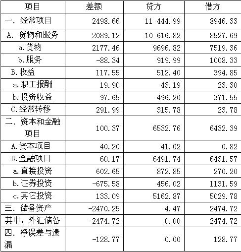 2006年中國(guó)國(guó)際收支平衡表 單位:億美元