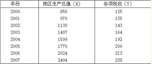(三)某地區(qū)2000—2007年地區(qū)生產(chǎn)總值與稅收收入資料如下表所示: