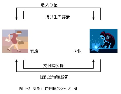 假設(shè)分析:如果在國民經(jīng)濟活動中,只有住戶和企業(yè),二者運行圖如下。