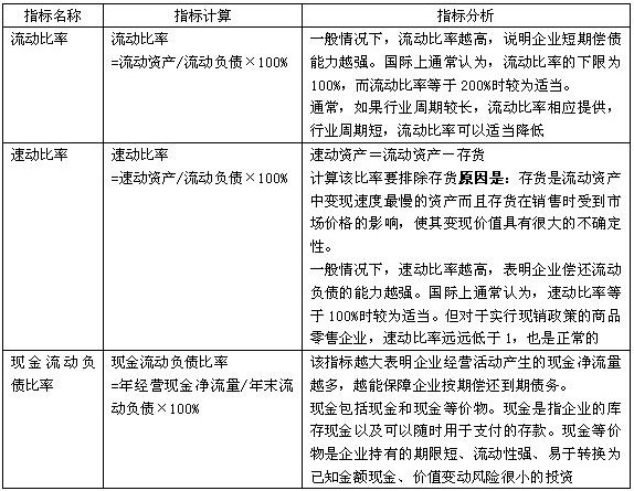 企業(yè)短期償債能力的衡量指標(biāo)主要有流動(dòng)比率、速動(dòng)比率和現(xiàn)金流動(dòng)負(fù)債比率。