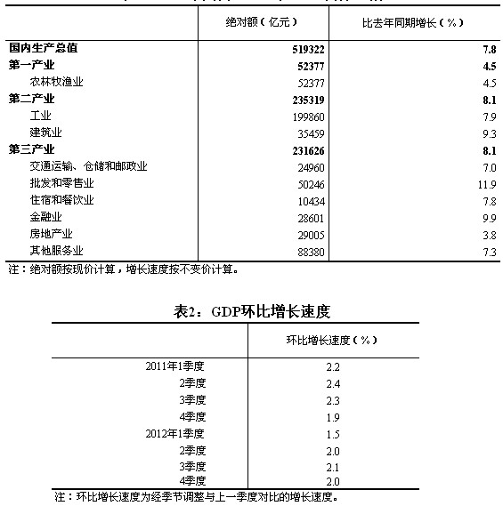 2012年國(guó)內(nèi)生產(chǎn)總值(GDP)初步核算情況