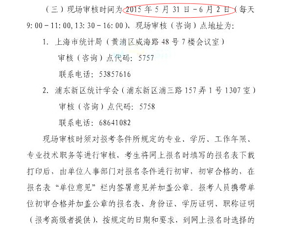 上海2015年統(tǒng)計(jì)師現(xiàn)場(chǎng)審核時(shí)間5月31日-6月2日