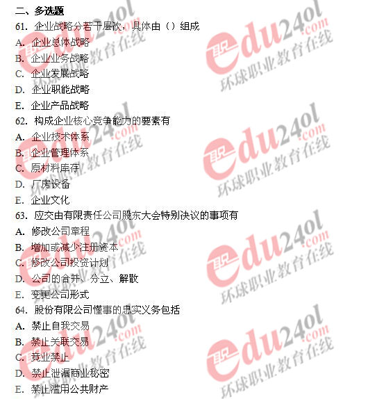 2008年經(jīng)濟(jì)師考試已于11月1日結(jié)束,環(huán)球網(wǎng)校及時(shí)整理了2008年經(jīng)濟(jì)師考試真題和答案,歡迎廣大考生核對(duì)考試答案,敬請(qǐng)廣大經(jīng)濟(jì)師考生關(guān)注。以下是中級(jí)工商管理專業(yè)知識(shí)與實(shí)務(wù)考試真題:
