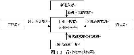 在一個(gè)行業(yè)中,普遍存在著五種基本競爭力量:行業(yè)內(nèi)現(xiàn)有企業(yè)、新進(jìn)入者、替代品生產(chǎn)者、供應(yīng)者和購買者,見P6及圖1-3。
