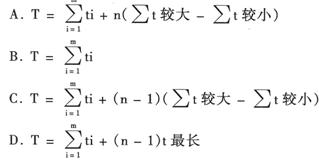 3. 如果該公司要求該批產(chǎn)品中的每個(gè)產(chǎn)品在某道工序加工完成后,馬上移到下一道工序去加工,則應(yīng)采用的產(chǎn)品移動(dòng)方式的計(jì)算公式是( )。