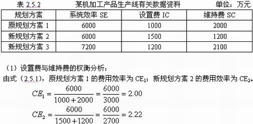 在壽命周期成本評價法中,權(quán)衡分析的對象包括以下五種情況:①設(shè)置費(fèi)與維持費(fèi)的權(quán)衡分析;②設(shè)置費(fèi)中各項費(fèi)用之間的權(quán)衡分析;③維持費(fèi)中各項費(fèi)用之間的權(quán)衡分析;④系統(tǒng)效率和壽命周期成本的權(quán)衡分析;⑤從開發(fā)到系統(tǒng)設(shè)置完成這段時間與設(shè)置費(fèi)的權(quán)衡分析。