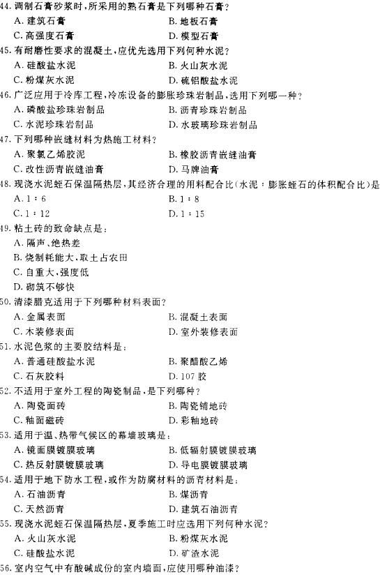 一級(jí)建筑師建筑材料與建筑結(jié)構(gòu)試題(三)