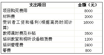 表一 培訓費用
