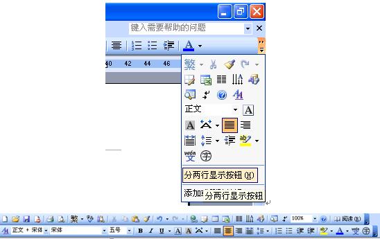 ◆若常用工具欄和格式工具欄一行顯示,可單擊工具欄右側(cè)“工具欄選項(xiàng)”,單擊“分兩行顯示按鈕”命令,工具欄分兩行顯示在菜單欄下。