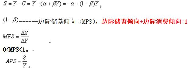根據(jù)上面得出的消費(fèi)函數(shù)的公式,以及消費(fèi)與儲(chǔ)蓄的關(guān)系,我們可以推導(dǎo)出儲(chǔ)蓄函數(shù)的公式: