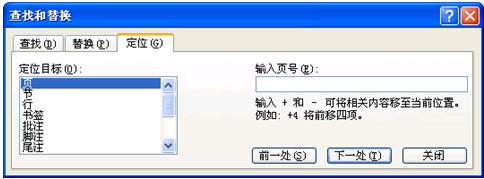◆在文檔中快速定位:單擊“編輯”菜單 的“定位”命令,彈出“查找和替換”對話框的“定位”選項卡,(也可通過Ctrl+F快捷鍵打開“查找和替換”對話框,單擊打開“定位”選項卡)然后通過頁號、節(jié)、行等條件來進行定位。