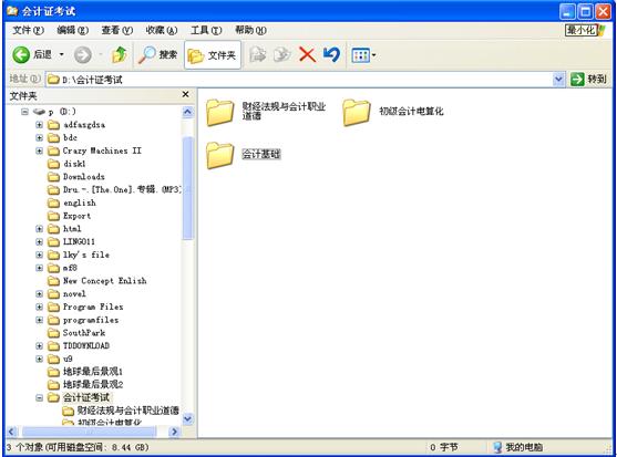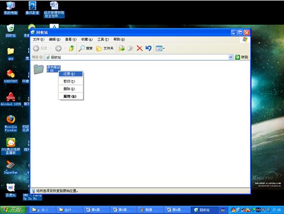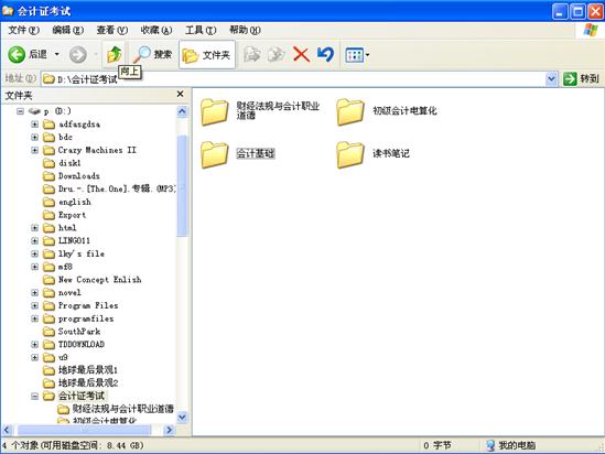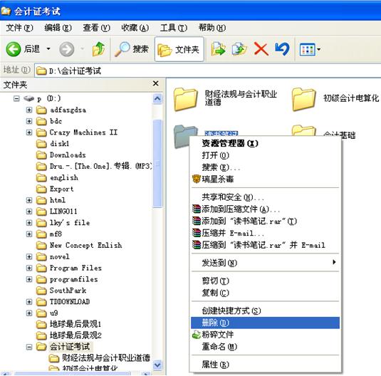 4.將“會(huì)計(jì)證考試”文件夾下“讀書筆記”文件夾刪除,然后從回收站中恢復(fù)到原位置。