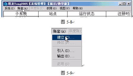 賬套管理包括賬套的建立、修改、引入和輸出等功能。賬套建立、賬套引入和輸出只能由系統(tǒng)管理員進行,而賬套的修改只能由賬套主管進行。