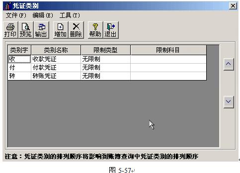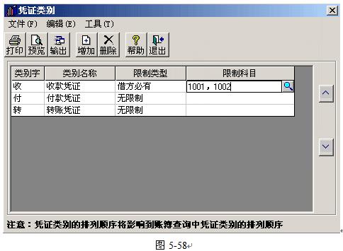 (四)在錄入憑證之前,應進行憑證類別的設置;已使用的憑證類別不能刪除,也不能修改類別字;如果限制科目為非末級科目,則在制單時,其所有下級科目都將受到同樣的限制。