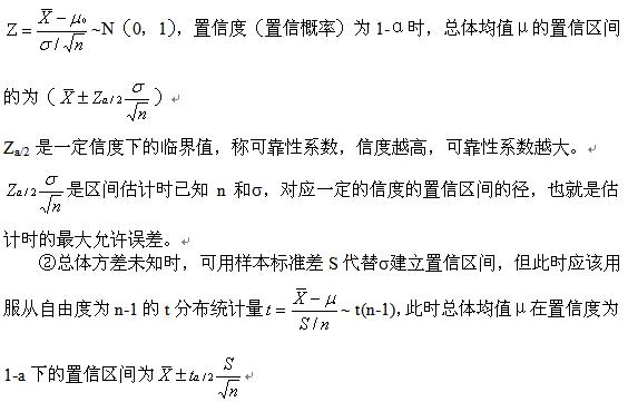 (2)區(qū)間估計(jì)。區(qū)間估計(jì)是用一個(gè)區(qū)間估計(jì)總體未知參數(shù)。