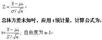 一般來說,用樣本均值估計(jì)總體均值,如果總體方差已知,用Z統(tǒng)計(jì)量檢驗(yàn);如果總體方差未知,用t統(tǒng)計(jì)量檢驗(yàn)。
