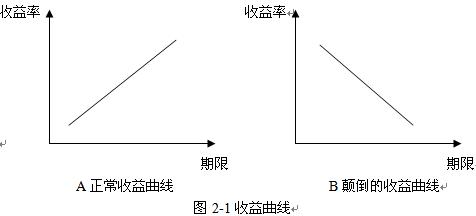 收益曲線的表現(xiàn)形態(tài)有:(1)正常的收益曲線(上升曲線),即常態(tài)曲線,指有價(jià)證券期限與利率呈正相關(guān)關(guān)系的曲線;(2)顛倒的收益曲線(下降曲線),指有價(jià)證券期限與利率呈負(fù)相關(guān)關(guān)系的曲線。