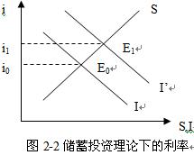 古典學(xué)派認(rèn)為,利率決定于儲蓄與投資的相互作用。儲蓄(S)為利率(i)的遞增函數(shù),投資(I)為利率的遞減函數(shù)。