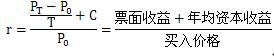 其中,r為實(shí)際收益率,C為票面收益,PT為賣出價(jià)格,P0為買入價(jià)格,T為持有期限。