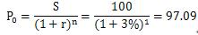 【例題2,計算題】假若金額為100元一張債券,不支付利息,貼現(xiàn)出售,期限1年,收益率為3%,到期一次歸還。則該張債券的交易價格為: