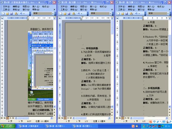 窗口之間的切換:如果同時打開多個窗口,需要在多個窗口之間進行切換,通常的操作是單擊“任務欄”上指定的任務按鈕,即打開相應的任務窗口,使之成為當前的活動窗口。如果要切換的窗口顯示在桌面上,只需將鼠標指向該窗口的任何位置,單擊鼠標,即可將此窗口切換為當前活動窗口。