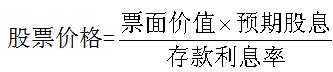 股票價格的高低與預期股息成正比,與銀行存款利息率成反比。