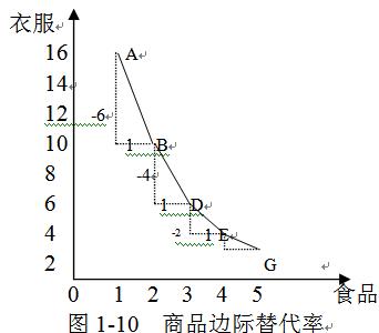 商品邊際替代率是指在效用水平不變的條件下,消費(fèi)者增加一單位某商品時(shí)必須放棄的另一種商品的數(shù)量。