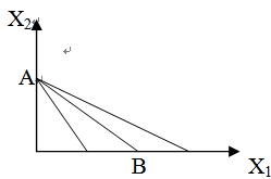 1、如果只是其中一種商品X1的價(jià)格上升,預(yù)算線(xiàn)中另一種商品X2的截距固定不變,而商品X1截距縮小,表明隨該商品價(jià)格上升,可購(gòu)買(mǎi)的該種商品的數(shù)量減少。表現(xiàn)為預(yù)算線(xiàn)在縱軸上的端點(diǎn)不變,而橫軸上的端點(diǎn)發(fā)生旋轉(zhuǎn)。如價(jià)格下降向外旋轉(zhuǎn),價(jià)格上升向內(nèi)旋轉(zhuǎn)。