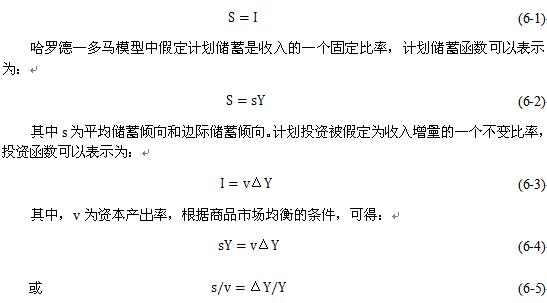 這就是哈羅德一多馬模型的基本公式。它表明國民收入增長率取決于儲蓄率s和資本產(chǎn)出率v。由于它是根據(jù)商品市場均衡條件推導(dǎo)出來,它表明s/v就是商品市場處于均衡時達(dá)到的增長率,即有保證的增長率。