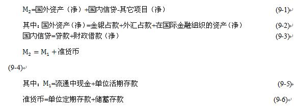 從(9-4)式可知,從廣義貨幣M2的構(gòu)成方面分析:一是M1的變動,二是準貨幣的變動。如果是M1的變動影響大,可進一步分析流通中現(xiàn)金及單位活期存款及影響其變動的因素;如果是準貨幣的變動影響大,可進一步分析單位定期存款和儲蓄存款及影響其變動的因素。