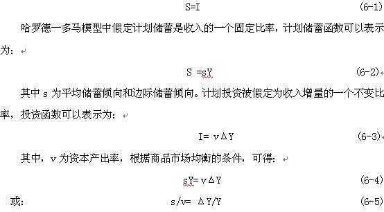 這就是哈羅德一多馬模型的基本公式。它表明國民收入增長率取決于儲蓄率s和資本產(chǎn)出率v。由于它是根據(jù)商品市場均衡條件推導(dǎo)出來,它表明s/v就是商品市場處于均衡時(shí)達(dá)到的增長率,即有保證的增長率。