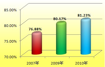 根據(jù)相關(guān)機(jī)構(gòu)公布的數(shù)據(jù),2007年,2009年,2010年注冊(cè)安全工程師考試全科一次性通過(guò)率分別為76.88%、80.17%、81.23%.